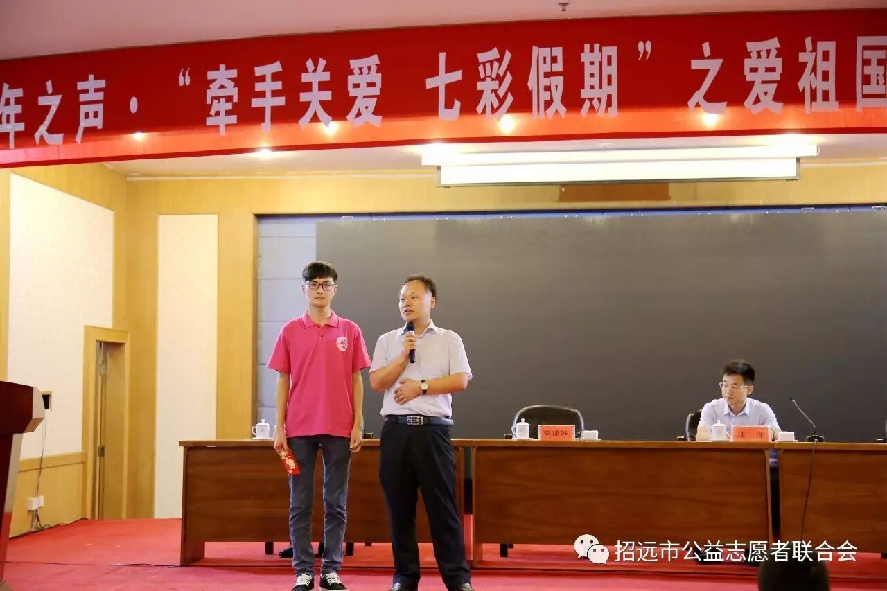 上午8点,在金城大酒店举办了2017年度“牵手关爱 七彩假期”活动启动仪式,招远市扶贫办、共青团招远市委、招远市民政局等部门的领导出席会议。团市委书记王洋对志愿者的爱心表示感谢,并要求保障孩子们的安全。扶贫办李建波主任鼓励孩子们遇到困难,不要气馁,勇于克服困难,并表示将尽最大努力帮助他们。